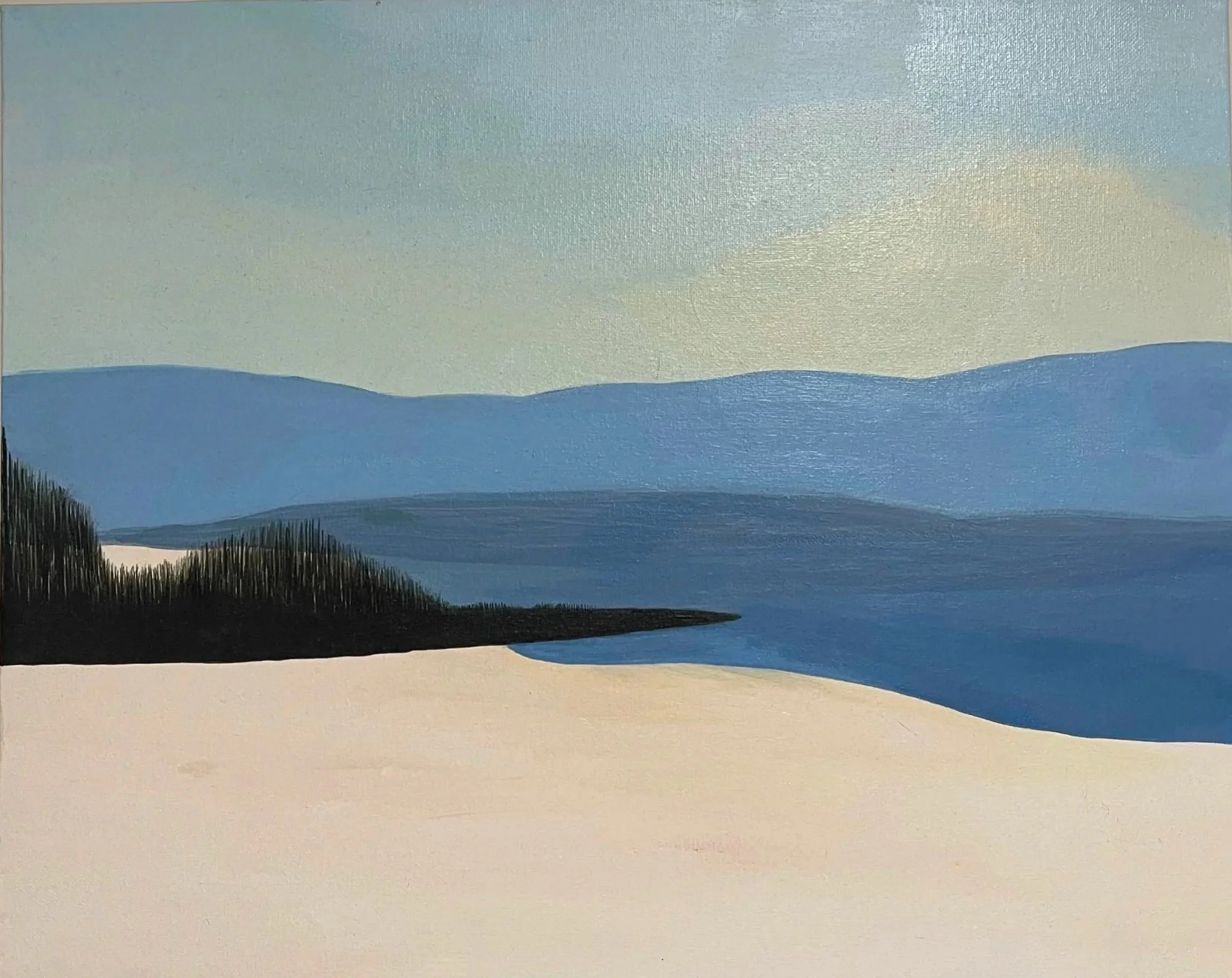 When I was younger, my family couldn’t afford to go on vacations, so for many years the idea of traveling felt out of reach. When we saved up to go on our first trip, it was transformative—a moment of discovery that brought me a deep sense of calm and well-being I hadn’t experienced before. This painting was one of my earliest attempts to capture that feeling, preserving the memory like a snapshot of serenity and wonder.